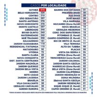 No levantamento feito dos leitos hospitalares, dos 52 disponíveis, 15 estão ocupados. Dos registros de infectados feitos por localidade, o bairro do Jatobá segue na frente com 615 casos. Por gênero, o sexo feminino segue na frente com 2.579 casos, e na faixa etária até 40 anos foram registrados 2.478 casos.