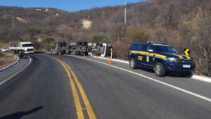 Os policiais rodoviários federais estiveram no local sinalizando e controlando o tráfego para não haver outros acidentes. A carreta estava subindo a serra, sentido Junco do Seridó, transportando algodão.