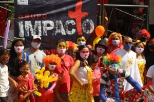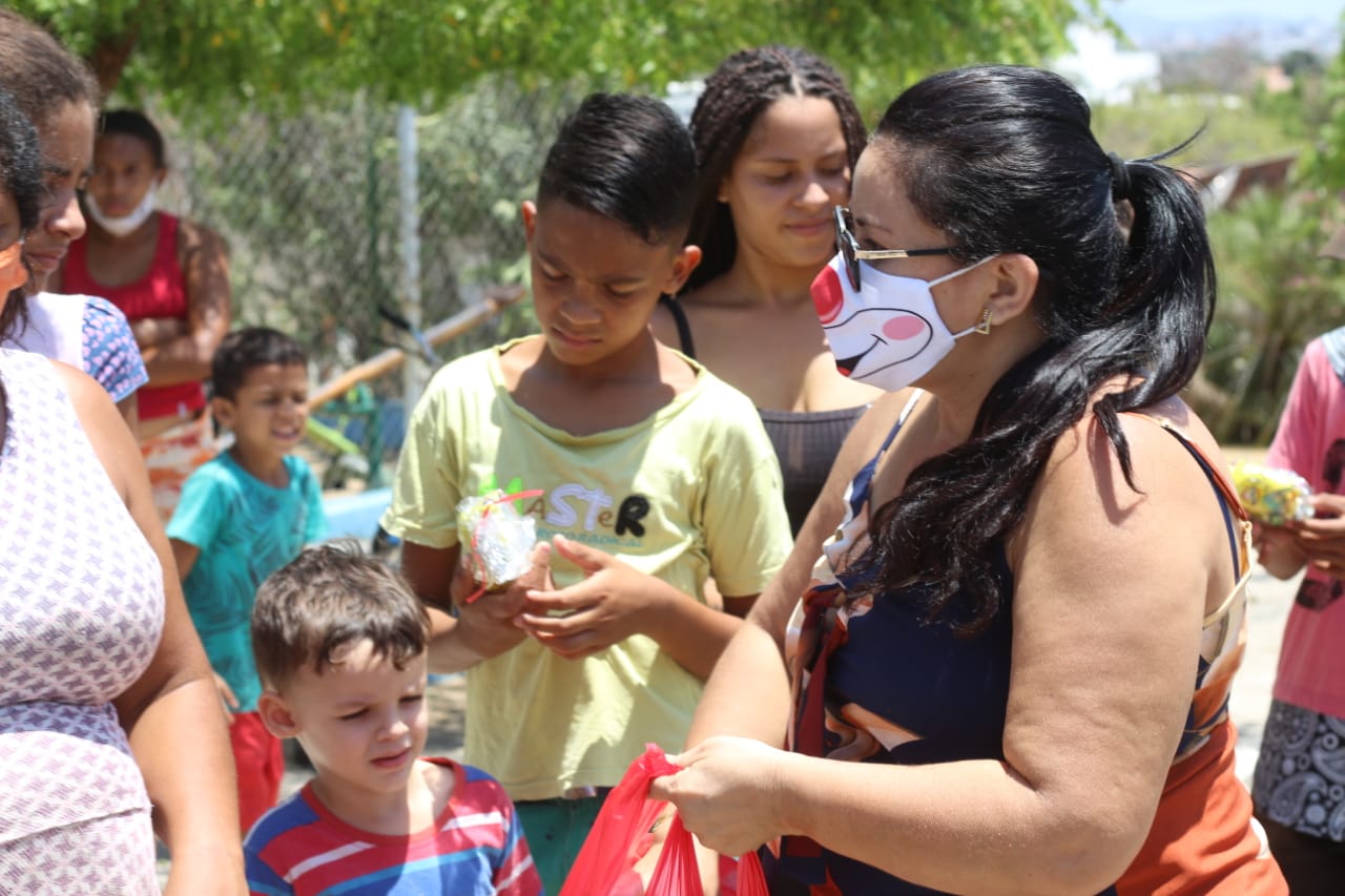 Nesta segunda-feira, 13, o Grupo Impacto, coordenado pelo casal Adailton Evangelista e Kateline, realizou o Dia das Crianças nas comunidades carentes de Patos