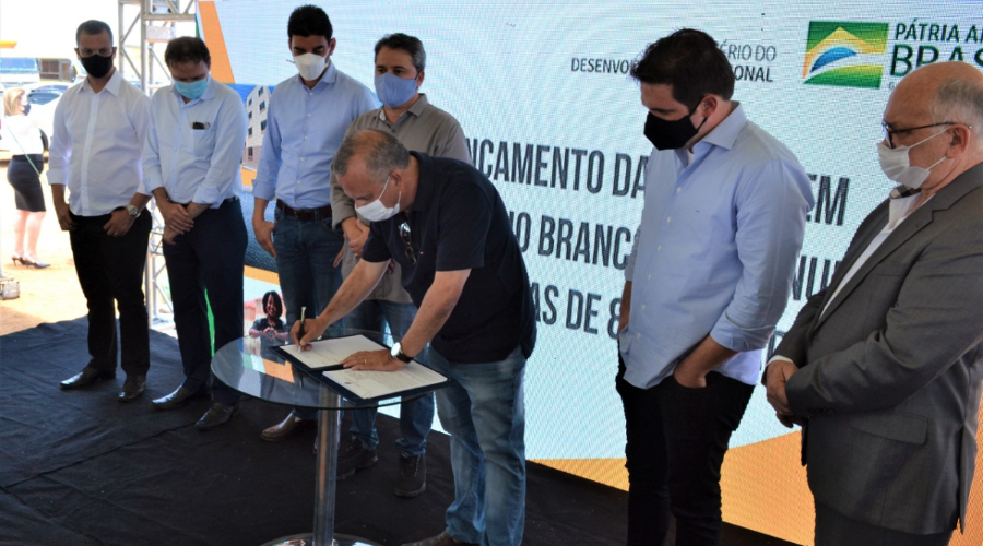 O ministro do Desenvolvimento Regional, Rogério Marinho, na manhã desta quinta-feira, 15, em visita a Patos, assinou ordem de serviço de retomada dos serviços de construção das 856 unidades habitacionais no Residencial São Judas Tadeu I e II, como também a assinatura de ordem de serviço para a construção da Barragem do Espinho Branco.