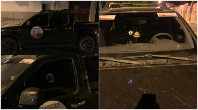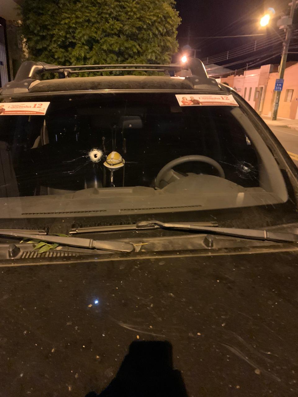A candidata estava com dois candidatos a vereador, Renato Machado e Léo, em visitas à zona rural quando, na volta para a cidade, dois homens que estavam numa moto, parados à margem da estrada, atiraram várias vezes contra o veículo.