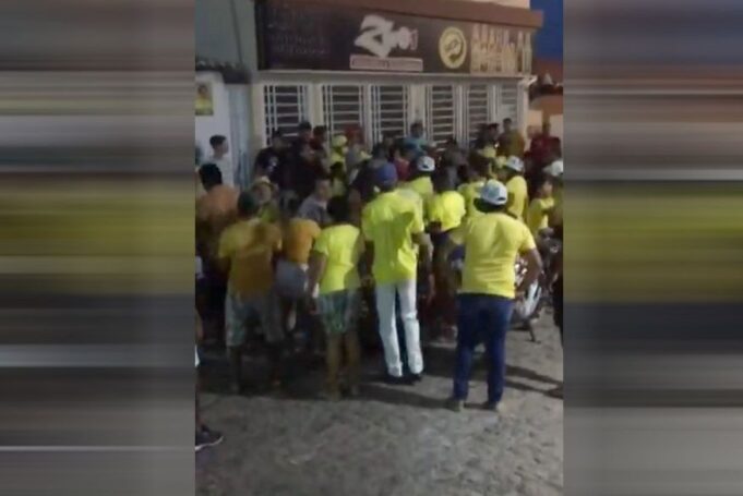 Os policiais encontraram uma aglomeração, com dezenas de pessoas, e um homem que estava ferido na barriga após ser atingido por um objeto perfurante (veja vídeos abaixo). De acordo com testemunhas, a vítima, identificada como Zé Filho, faz parte da oposição ao candidato.