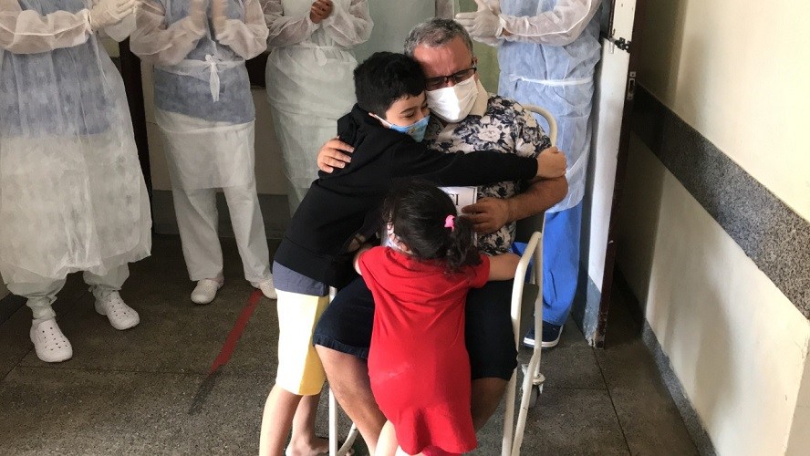 Na saída do hospital, sob aplausos, o apresentador reencontrou a esposa e os filhos e não segurou as lágrimas: “Eu queria que as pessoas entendessem que isso não é brincadeira, essa doença é muito séria, eu tive momentos que achei que não ia escapar, pensei nunca mais ver minha família”, desabafou.