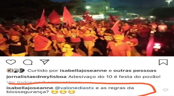 Nas imagens facilmente obtidas e captadas por vídeos e fotos, que circulam em redes sociais, tais como, Instagram, Facebook e grupos de Whatsapp, é possível ver as repetidas aglomerações de partidários, veículos utilitários equipados com paredões de som, consumo de bebida alcoólica, pessoas sem utilizar mascaras ou sem manter o distanciamento mínimo estipulado em lei, tipificando descumprimento e descaso com a lei e com os agentes que “deveriam” fazer cumprir a legislação vigente.