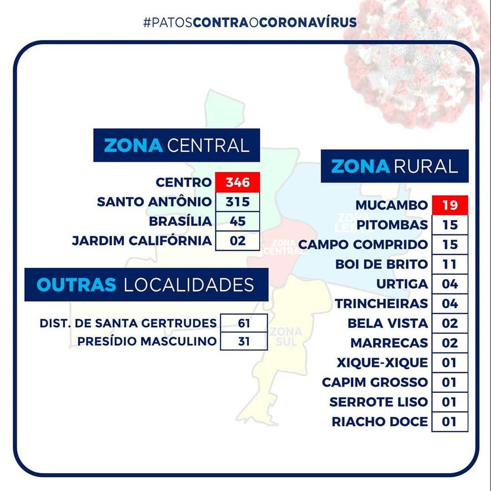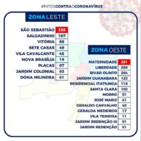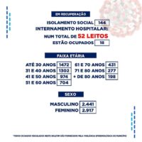 No levantamento feito dos leitos hospitalares, dos 52 disponíveis, 18 estão ocupados. Dos registros de infectados feitos por localidade, o bairro do Jatobá segue na frente com 653 casos. Por gênero, o sexo feminino segue na frente com 2.917 casos, e na faixa etária até 40 anos foram registrados 2.774 casos.