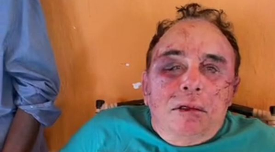 É possível ver o rosto do candidato Arimateia Camboim, que ficou totalmente desfigurado, após a agressão dos assaltantes.