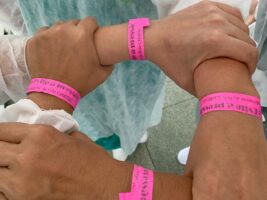 Organizado pela Comissão de Proteção e Tratamento da Pele do CHRDJ, a ação aconteceu durante todos os plantões do dia, em todos os postos de Enfermagem. Neles, os profissionais foram abordados e receberam informações e orientações quanto à importância da mudança de decúbito na prevenção da LPP, bem como de demais cuidados com a pele dos pacientes acamados. Como forma de reforço das orientações, foi colocada uma fita rosa no braço de todos os profissionais da Enfermagem da unidade, simbolizando a adesão a campanha: Mude de lado – evite a pressão!
