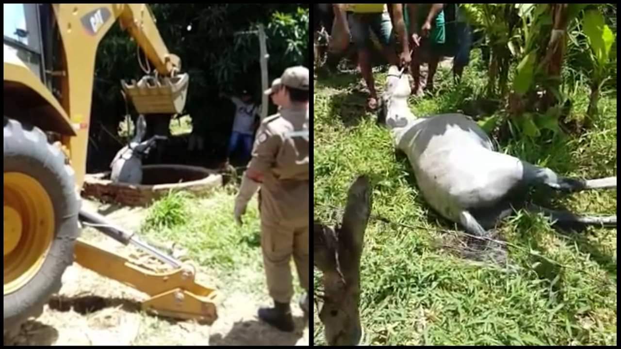 Bombeiros militares e populares resgataram um cavalo após ele cair dentro de um cacimbão, nesta segunda-feira, 23 de novembro, no Sítio Bom Sucesso, na zona rural de Bom Sucesso, região de Catolé do Rocha.