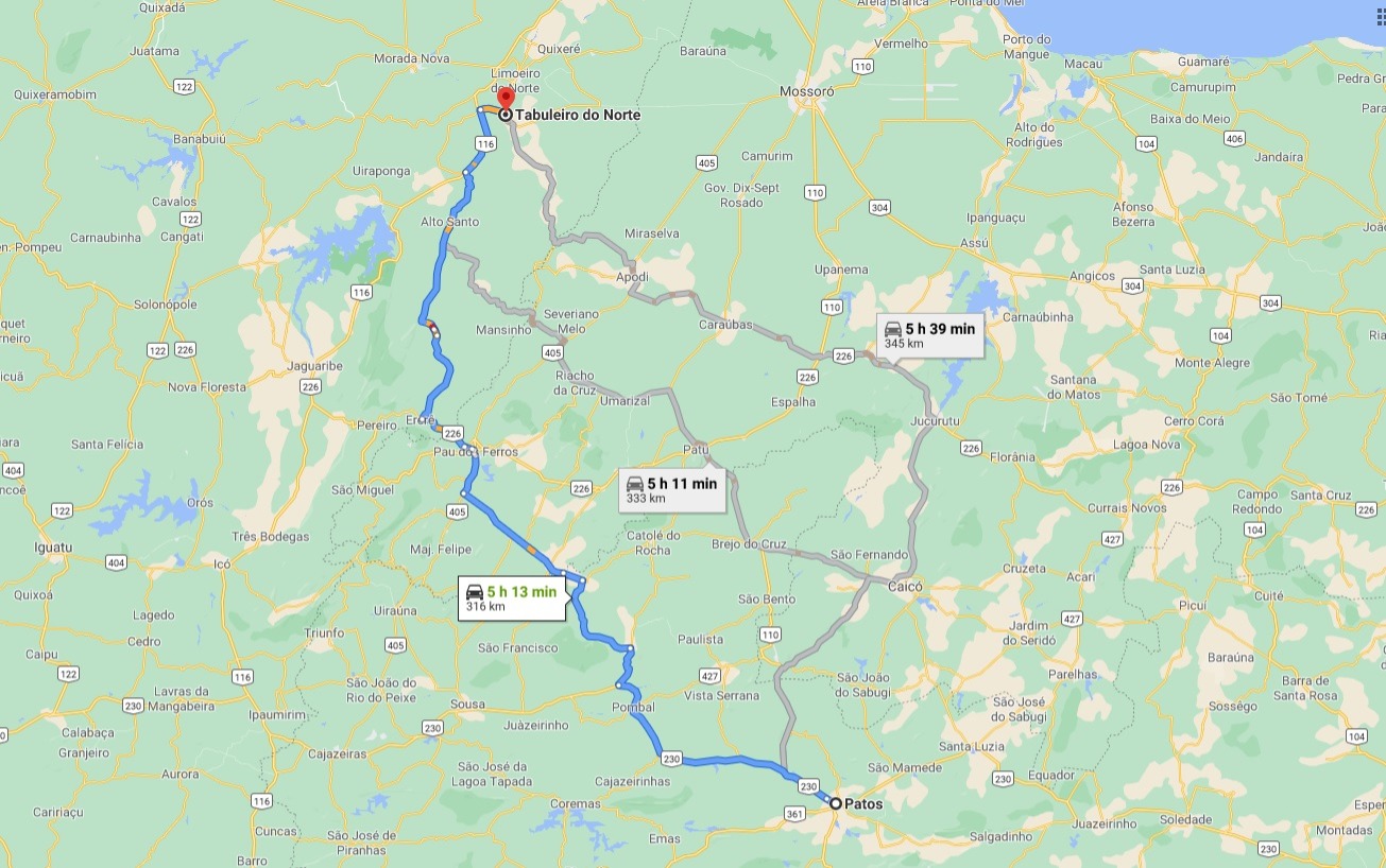 Numa viagem de carro de passeio, ele gastaria no máximo 5h13 para percorrer os 315,6 Km pela via CE-138.