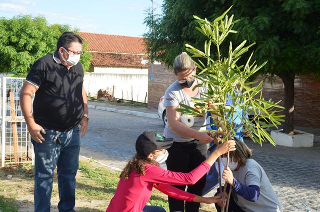 A Secretaria Municipal de Meio Ambiente em parceria com os professores da UFCG na tarde desta quarta-feira, 25, fez o plantio de 17 mudas de árvores no bairro Jardim Guanabara, a partir da iniciativa da jovem Kauany Camboim.
