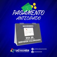 O prefeito de São Mamede, na Região Metropolitana de Patos, Umberto Jefferson, surpreendeu mais uma vez os servidores ao anunciar na tarde desta quinta-feira, 26/11, o pagamento dos vencimentos dos servidores da Prefeitura referente a novembro que já foram creditados estando disponível nesta sexta-feira (27).