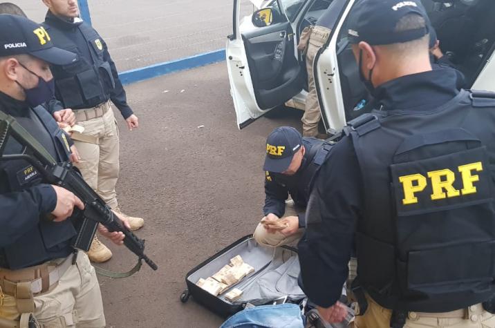 Com os assaltantes foi encontrado uma mala contendo milhares de reais em espécie. A ocorrência está em andamento. As buscas por outros envolvidos continua.