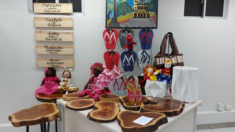 Estarão expostos os trabalhos desenvolvidos no interior de várias unidades prisionais do estado, do Litoral ao Sertão. São bonecas, bolsas, sandálias, molhos de pimenta em conserva, gesso em 3-D, móveis rústicos, entre outros produtos.