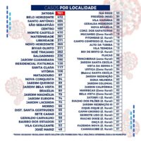 Dos registros de infectados feitos por localidade, o bairro do Jatobá segue na frente com 781 casos. Por gênero, o sexo feminino segue na frente com 3.842 casos, e na faixa etária até 40 anos foram registrados 3.565 casos.