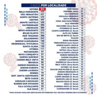 Dos registros de infectados feitos por localidade, o bairro do Jatobá segue na frente com 802 casos. Por gênero, o sexo feminino segue na frente com 3.928 casos, e na faixa etária até 40 anos foram registrados 3.658 casos.