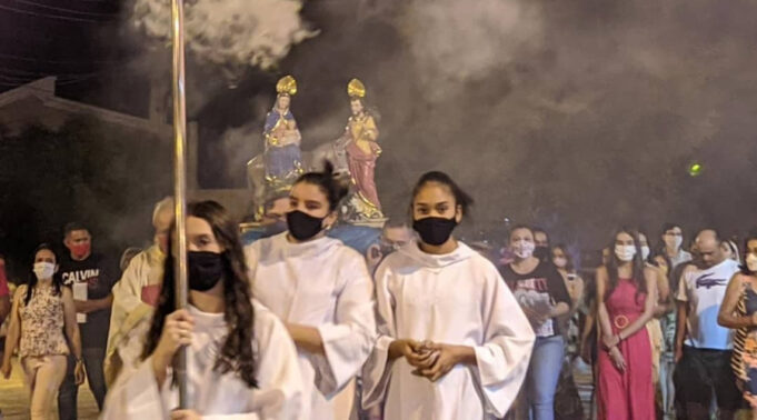 Antes do ato religioso, uma missa campal foi realizada em frente a matriz de Vista Serrana reunindo fiéis. Em fotos divulgadas pela paróquia nas redes sociais, é possível observar que as pessoas estavam usando máscaras.