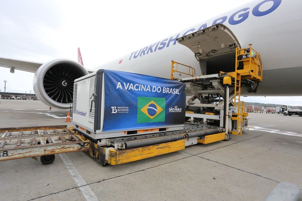 Na véspera de Natal (24), São Paulo recebeu a maior carga de 5,5 milhões de doses composta por 2,1 milhões na forma pronta para aplicação e mais 2,1 mil litros de insumos, correspondentes a 3,4 milhões de doses que serão envasadas na fábrica do Butantan. A carga com o maior lote de imunizantes foi recebida no Aeroporto Internacional de Viracopos, em Campinas, no interior do estado.