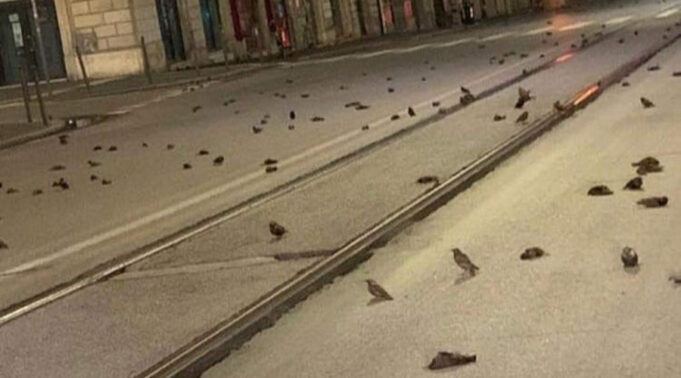 Centenas de pássaros foram encontrados mortos em uma rua próxima à principal estação ferroviária de Roma, nesta sexta-feira (1º), após a chegada do Ano Novo.