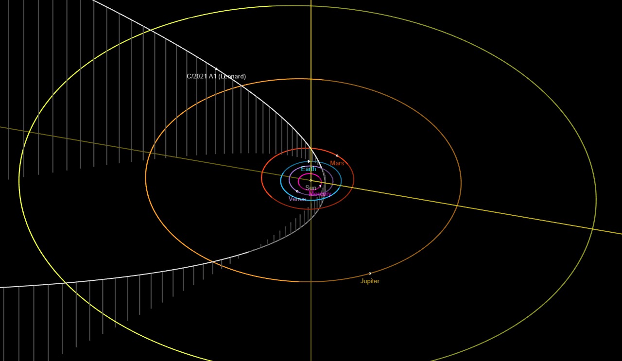 Cometas com órbitas hiperbólicas, fazem uma passagem única pelo Sistema Solar Interior. Após sua aproximação com o Sol, que deve ocorrer em janeiro de 2022, o Cometa Leonard deve ser lançado de volta para fora do Sistema Solar para nunca mais voltar.