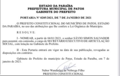O Diário Oficial do Município de Patos, deste domingo (17), trouxe mais promoções de primeiro escalão feitas pelo prefeito Nabor Wanderley.