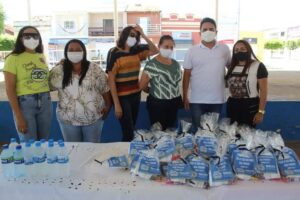Além dos ônibus também foi ofertado um kit composto por caneta, máscara, álcool em gel, água e chocolate, que foram entregues no momento em que os alunos entraram nos ônibus.