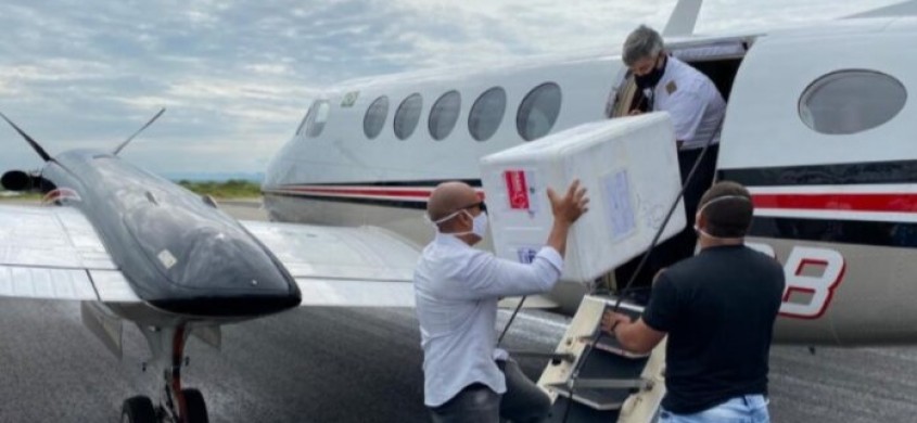 Em Patos, as mais de 1.000 doses da Coronavac desembarcaram no Aeródromo Brigadeiro Firmino Ayres em uma aeronave do Estado por volta das 9h20.