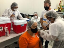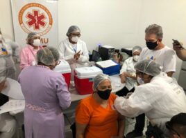 A primeira servidora do SAMU a receber a vacina Coronavac foi a auxiliar de Serviços Gerais, Cledimar Barreto de Medeiros, que demonstrou satisfação diante do momento. “Eu fiquei muito emocionada, e estou muito feliz por ter chegado essa vacina. Vamos vencer juntos, se Deus quiser”, externou.