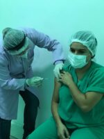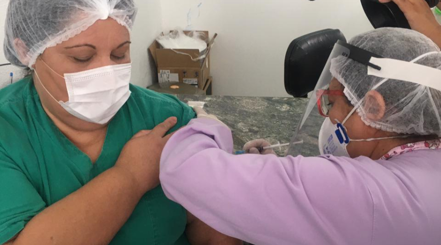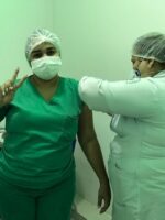 A Técnica de Enfermagem, Salustiana Klívia Marques, de 42 anos, foi a primeira profissional do Complexo Hospitalar Regional Deputado Janduhy Carneiro de Patos (CHRDJC) a receber a dose da vacina Coronavac, na tarde desta quarta-feira (20). Ela foi escolhida para abrir a vacinação dos funcionários da unidade por ter contraído a Covid, conseguido superar a doença e voltado, sem titubear, mesmo a contragosto de parentes e amigos, para a linha de frente no combate ao coronavírus. “Além do compromisso de minha profissão, o que me fez ter forças para voltar à linha de frente foi o fato de eu representar a esperança de cura, pois se eu venci o Covid, meu testemunho e exemplo pode encorajar as pessoas a enfrentarem essa doença com mais otimismo”, disse ela, após receber a primeira de duas doses da vacina.