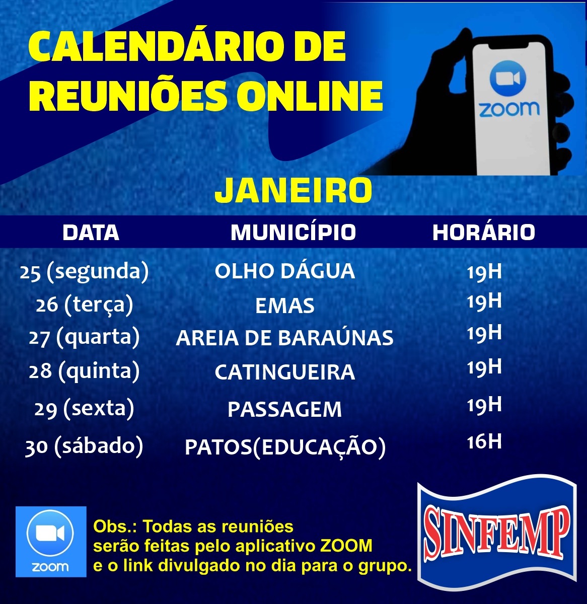 Antecipando o lançamento serão realizadas reuniões online com os associados em todos os municípios que terá início neste dia 25 de janeiro, se estendendo até 8 de março do corrente.