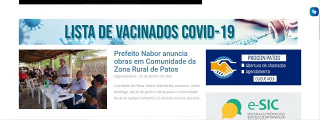 Em Patos, sertão paraibano, a lista de vacinados Covid-19 está disponível no site oficial da Prefeitura de Patos, separada por estabelecimento de saúde.