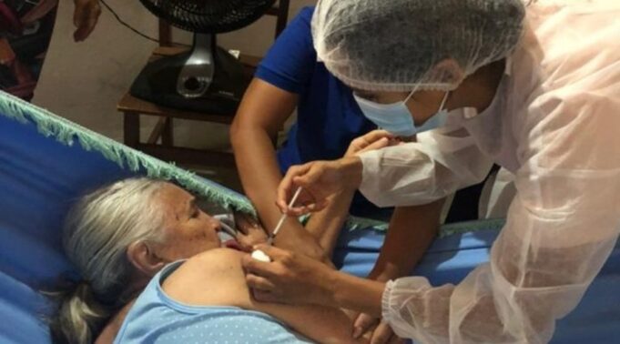 A idosa foi imunizada por profissionais de saúde lotados na Unidade de Saúde da Família Bernardo Vieira, localizada no bairro supracitado, onde foram vacinados mais 08 idosos inseridos nesse grupo prioritário.