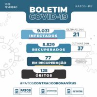 Patos registrou até o dia de hoje 9.031casos da Covid-19.