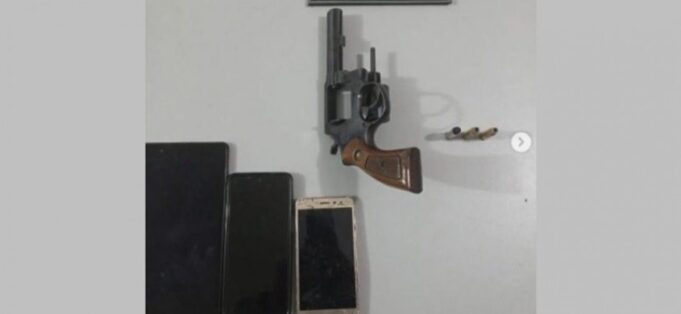 Foram apreendidos um revólver, calibre 38, 3 munições intactas, nº da arma PJ457565, 2 celulares, 2 relógios, um tablete, a quantia de 1.835,00 reais, e um veículo GOLF, vermelho, placa QSF-3300.