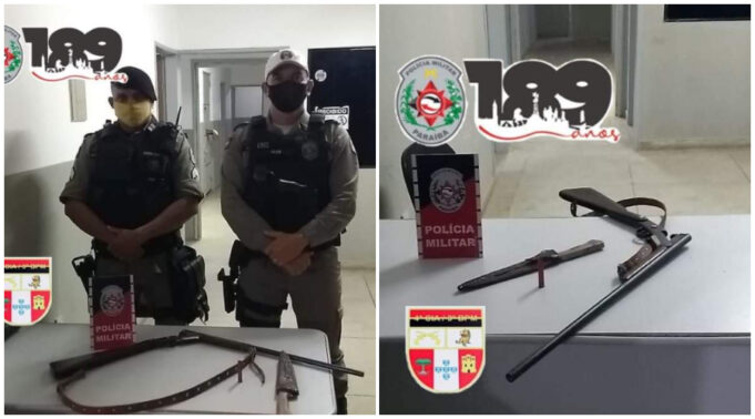 Os policiais fizeram a apreensão do objeto. Dessa forma, localizada a espingarda e os envolvidos, a ocorrência foi encaminhada até a Delegacia de Teixeira para procedimentos.