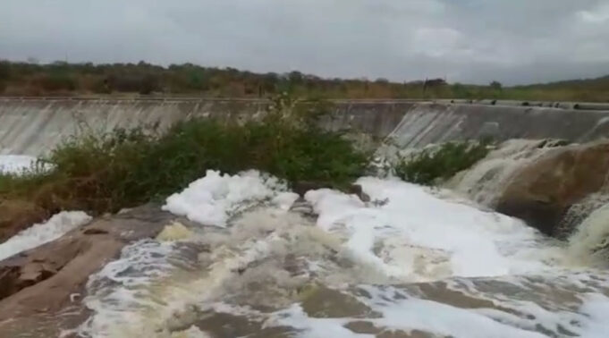 Registro da sangria da Barragem do Sacramento entre São João do Sabugi e Caicó-RN na manhã desta terça-feira, 16/02.