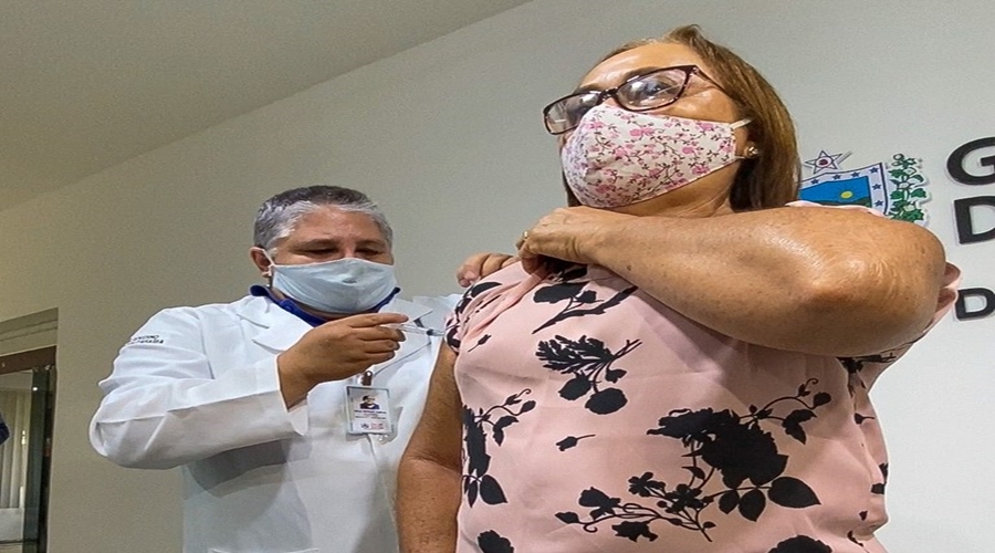 Primeira paraibana a tomar a vacina contra a Covid-19, a enfermeira Marineide Gouveia recebeu, nesta segunda-feira (15), a segunda dose do imunizante. A aplicação aconteceu na Secretaria de Estado da Saúde (SES), em João Pessoa.