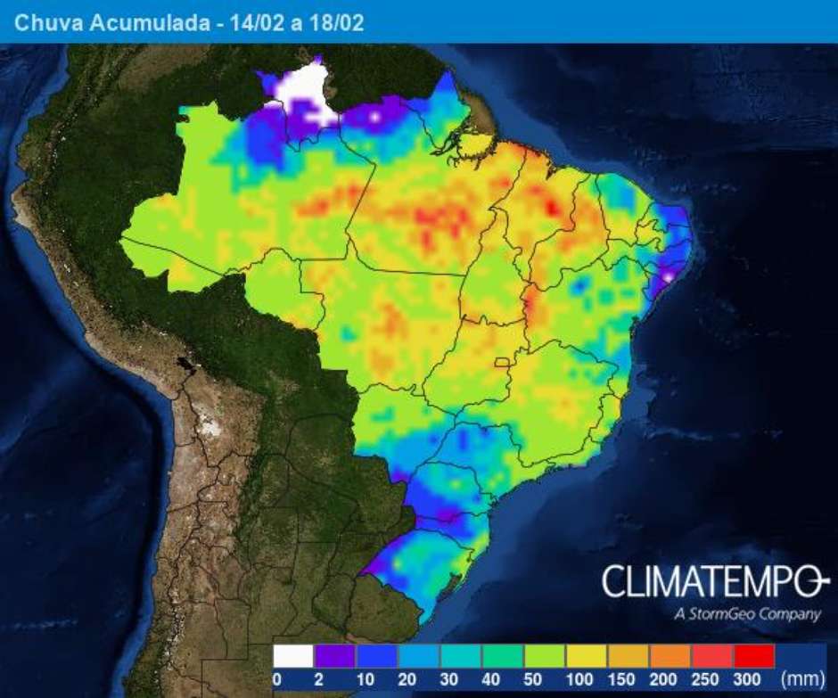 Os volumes de chuva dos próximos dias serão muito expressivos na Região Nordeste. Apenas entre os dias 14 e 18 de fevereiro, a projeção dos modelos meteorológicos é de mais de 200mm acumulados em áreas do Maranhão, Piauí e no oeste da Bahia. Confira na imagem abaixo.