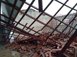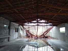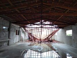 O teto do refeitório da Escola Municipal Sebastião Alves de Lima desabou com a primeira chuva que caiu em Condado, Região Metropolitana de Patos, entre à noite de ontem (segunda, 15) e a madrugada de hoje (terça, 16).
