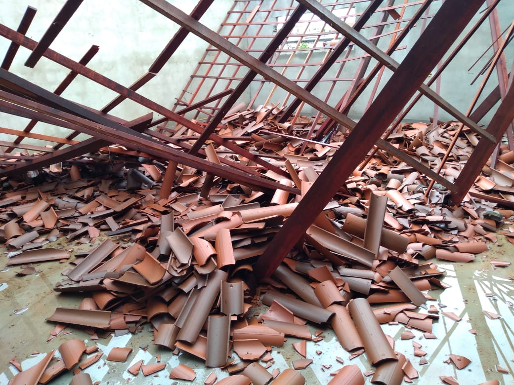 O teto do refeitório da Escola Municipal Sebastião Alves de Lima desabou com a primeira chuva que caiu em Condado, Região Metropolitana de Patos, entre à noite de ontem (segunda, 15) e a madrugada de hoje (terça, 16).
