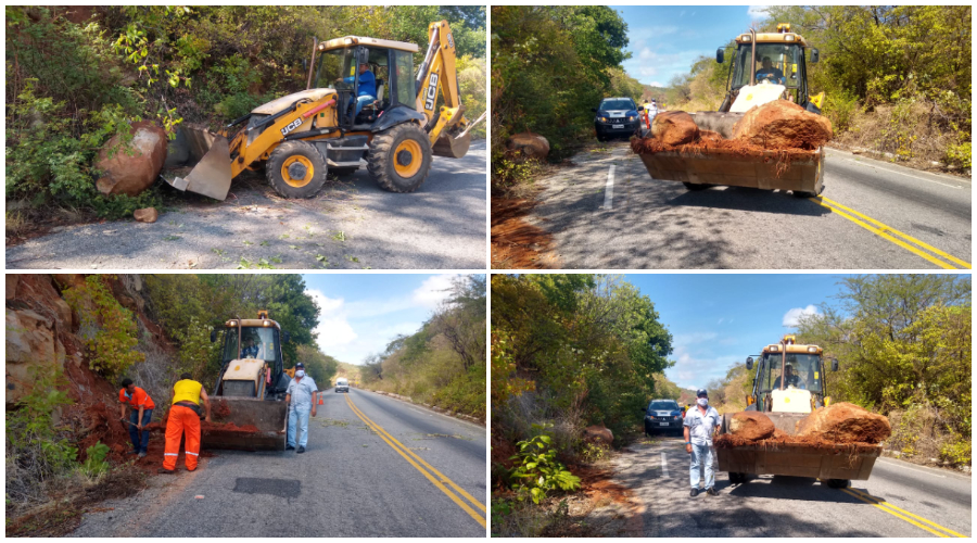 O diretor regional do Departamento de Estradas de Rodagens da Paraíba, Madiel Conserva, informou que a retirada de pedras que deslizaram na PB-262, precisamente na Serra do Teixeira, foi concluída por volta das 9h desta quinta-feira, 18/02.