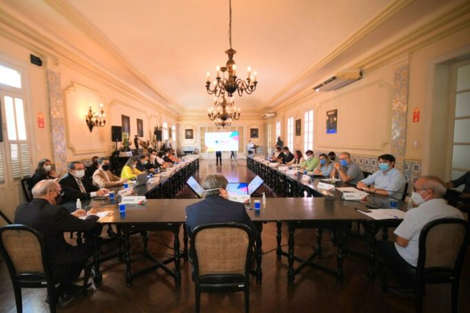 O governador João Azevêdo se reuniu, nesta segunda-feira (22), no Palácio da Redenção, em João Pessoa, com o Comitê Gestor da Saúde e com o prefeito da Capital paraibana, Cícero Lucena, ocasião em que foram discutidas ações para conter a disseminação da Covid-19 e consolidar um decreto que será divulgado nesta terça-feira (23) com o objetivo de estabelecer um conjunto de medidas protetivas para evitar aglomerações. Os gestores também asseguraram a ampliação de leitos de Unidade de Terapia Intensiva (UTI) e de enfermaria.