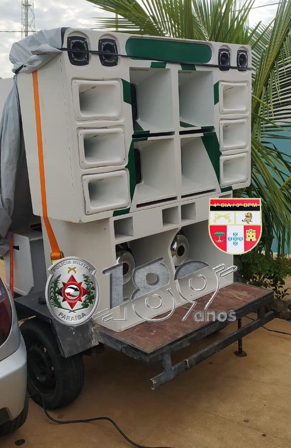 Também em Cacimbas, a Guarnição Ambiental autuou um paredão por causar poluição sonora acima do limite permitido, e como tal, provocando aglomeração de pessoas diante de um cenário de pandemia e descumprindo normas de decretos Estadual e Municipal.