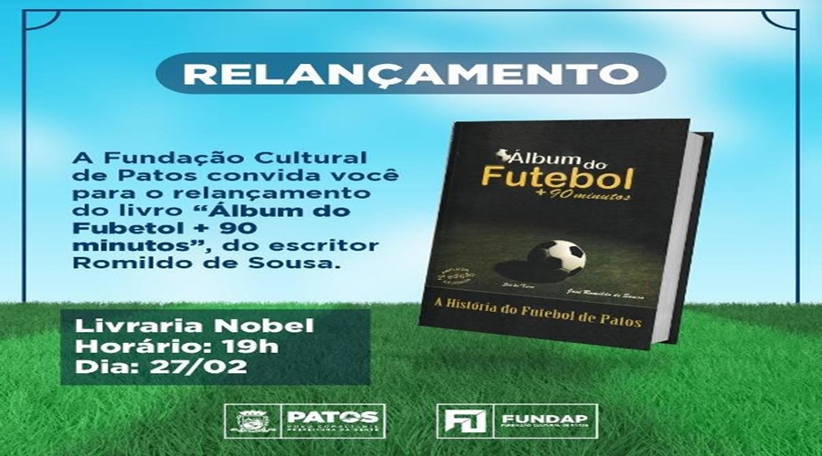 A história do Futebol Patoense vai ganhar mais um capítulo. O escritor e historiador José Romildo de Sousa relançará, neste sábado (27), às 19h na Livraria Nobel do Guedes Shopping, em Patos (PB), a obra “Álbum do Futebol + 90 minutos – A história do Futebol de Patos”. O relançamento irá acontecer respeitando todos os protocolos de lei sanitária e saúde, conforme exige a realidade que o país vive devido à COVID-19.