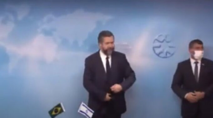 Em visita oficial a Israel para conhecer testes preliminares de uma droga contra a Covid, o ministro das Relações Exteriores, Ernesto Araújo, foi repreendido por não usar máscara durante uma cerimônia oficial com o chanceler israelense Gabi Ashkenazi.