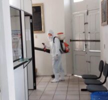 Nesse contexto, a desinfecção das repartições públicas vem acontecendo semanalmente para minimizar o poder de transmissão da doença.