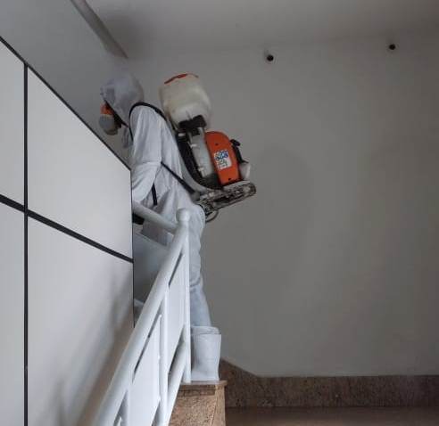 Nesse contexto, a desinfecção das repartições públicas vem acontecendo semanalmente para minimizar o poder de transmissão da doença.