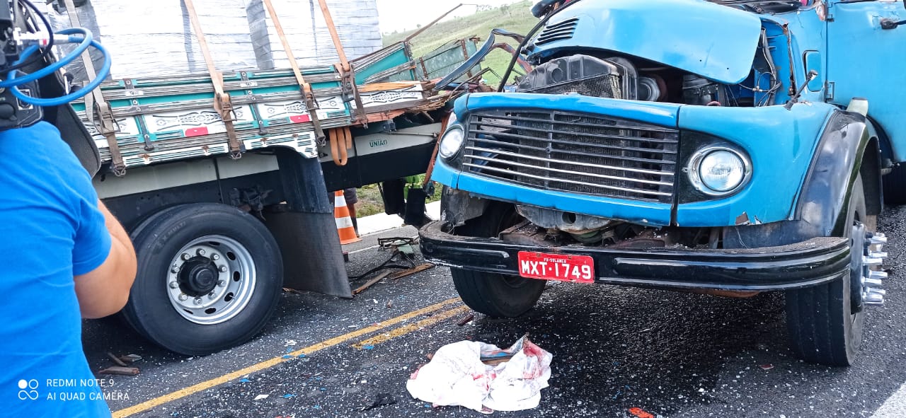 Segundo informações, um dos caminhões foi fazer uma ultrapassagem e acabou causando a colisão. Neste momento a rodovia segue interditada nos dois sentidos.