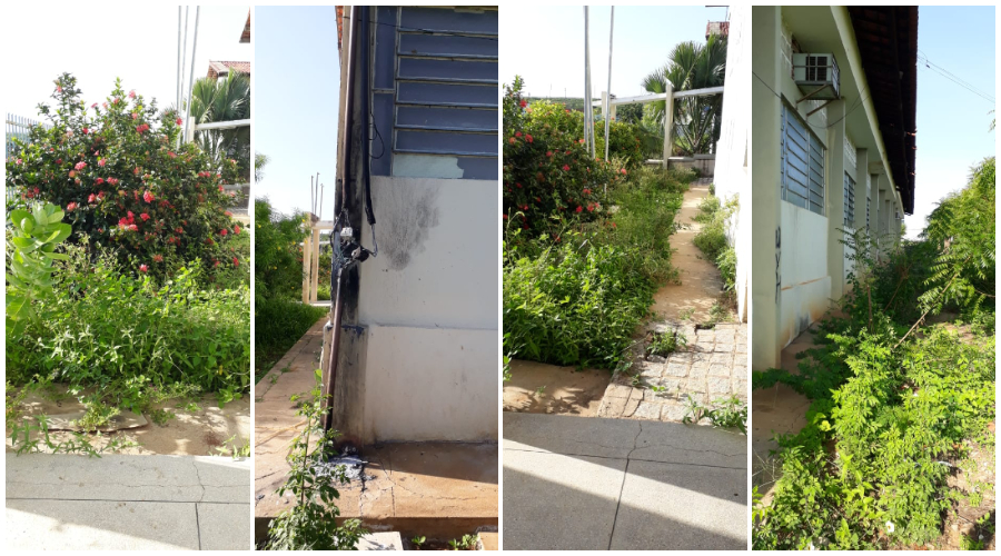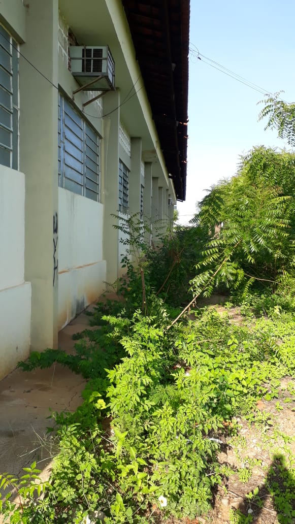 Falta de energia há quatro meses, mato tomando de conta, problemas na estrutura física do prédio são alguns problemas citados pelos residentes.