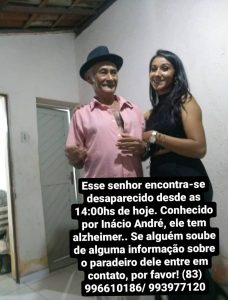 Inácio André, que reside na Rua Pedro Barros, zona norte de Juazeirinho, no Seridó da Paraíba, está desaparecido desde as 14 horas.