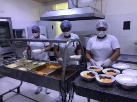 Pacientes do Complexo fazem seis refeições/dia, ou seja, desjejum (7h), colação (9h), almoço (12h), lanche (15h), jantar (18h) e ceia (21h). Funcionários, atualmente, têm cinco refeições/dia, a saber: desjejum (6h30 às 7h), colação (será também incluso), almoço (11h30 às 13h), lanche (15h às 16h), jantar (20h às 21h) e ceia (23 às 24h). Os acompanhantes têm o desjejum às 7h, o almoço de 11h as 11h30 e o jantar das 19h às 20h. “Por essa quantidade de refeições, você imagina a movimentação da cozinha e copa para assegurar pontualidade nos horários e qualidade das refeições servidas. Nutrição é um serviço fundamental em qualquer local, mas numa instituição hospitalar, onde a dieta é imprescindível para recuperação da saúde, é mais ainda”, reitera Luciana. Ela lembra que a migração do sistema terceirizado para a autogestão não comprometeu a continuidade do serviço porque a direção se programou com compras emergenciais para que não ocorresse nenhuma interrupção ou comprometimento do serviço e que ao longo do ano serão incorporado um cardápio especial em datas de celebração, a exemplo do dia da Mulher, das Mães, no Natal, etc.